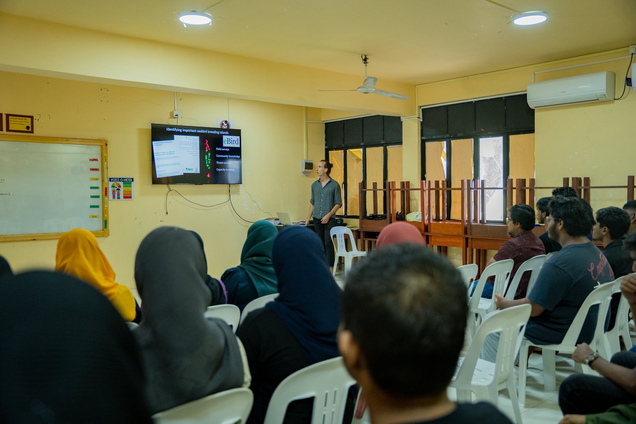 These sessions were dedicated to raising awareness about protected and migratory birds in the Maldives, drawing from the findings of their ongoing study via the Ocean Country Partnership Programme (OCPP): Status of common breeding and migratory birds in the Maldives. Learn more about the study - here